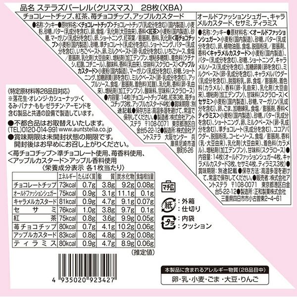 他の画像を見る 【季節限定品】 ステラズバーレル(クリスマス) 28枚 定価 ¥ 2,592 税込 販売期間 2025/10/30 12:00 〜 2025/12/22 9:59 カートに入れる お気に入りに登録する